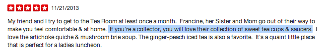 That teacup collection sounds like social media gold, especially for image-based networks like Pinterest and Instagram.